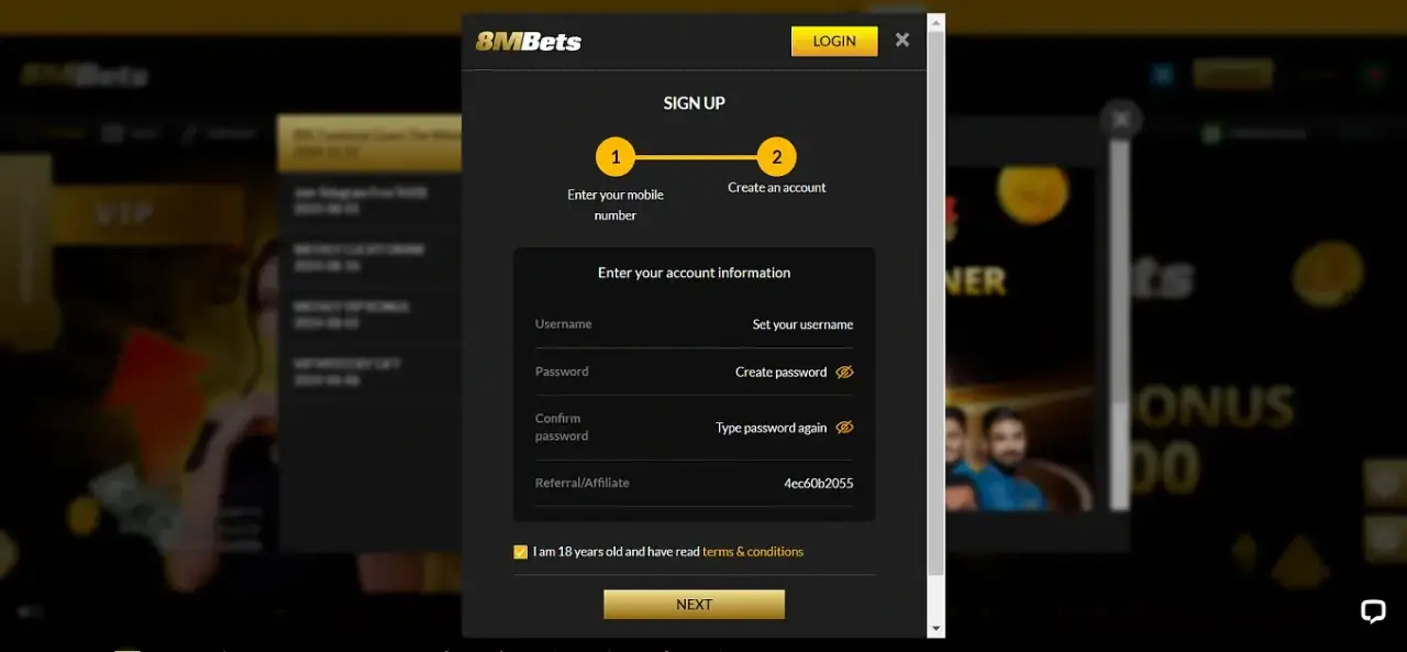How to Register on 8MBETS